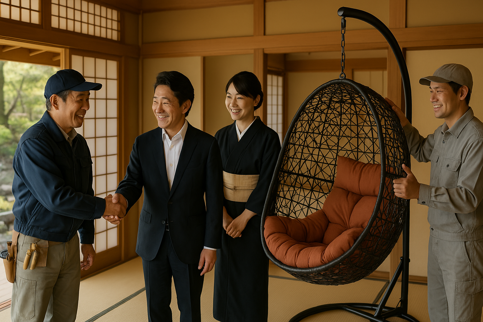 日本の住環境や多湿な気候、そして私たち日本人の体型に合わせて設計。限られたスペースでも快適に、梅雨や台風シーズンでも安心してお使いいただける“日本仕様”ハンギングチェアを追求しました。