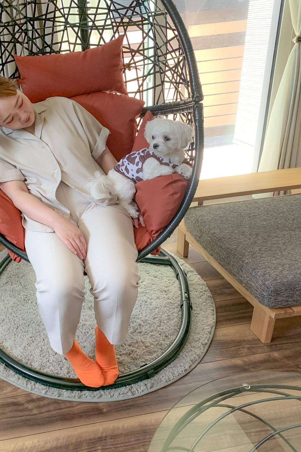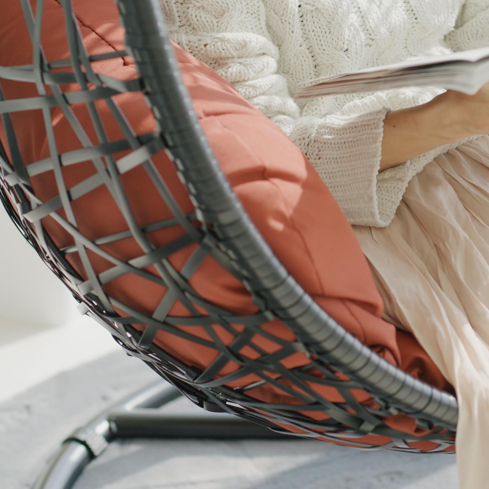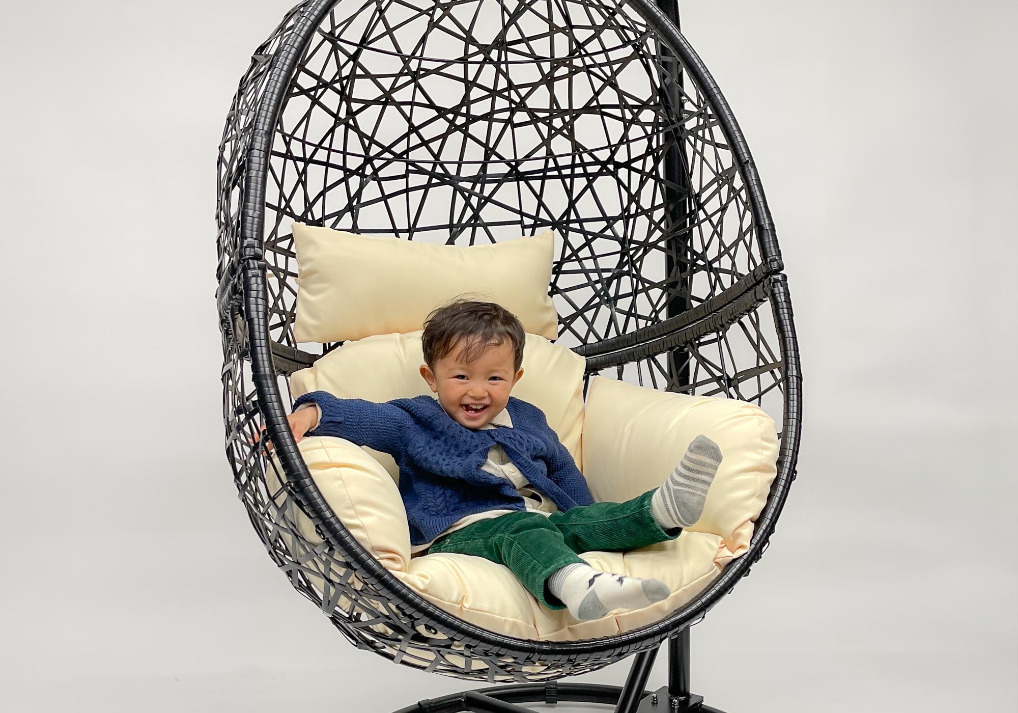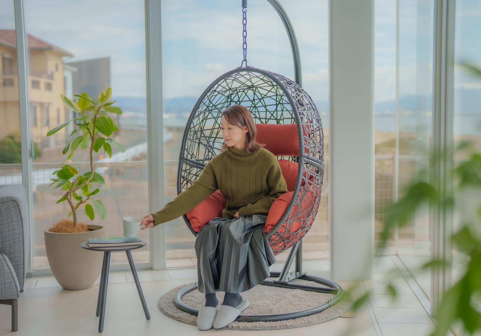 日本の住環境や多湿な気候、そして私たち日本人の体型に合わせて設計。限られたスペースでも快適に、梅雨や台風シーズンでも安心してお使いいただける“日本仕様”ハンギングチェアを追求しました。